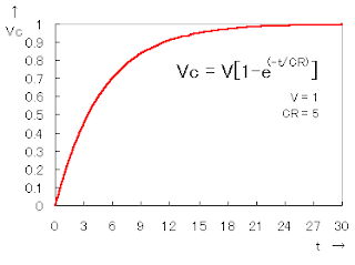 The change of the voltage(Vc) which appears in the both edges of the capacitor(C) becomes the following formula.